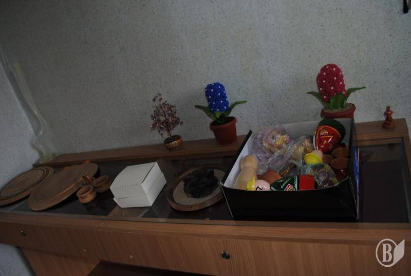 До галереї її не допустили, а речі, які їй милостиво дозволили забрати, виявилася аж ніяк не експонатами, що наповнювали галерею. Біля замкнутих дверей галереї вона побачила тільки купу ящиків, наповнених старими архівними газетами, одягом та кількома пляшками вина урожаю 1999 року, часу заснування галереї. Завгосп пояснив, що це підготовлені ними для вивозу особисті речі Т. Жогалко, а більше у залі нічого немає.