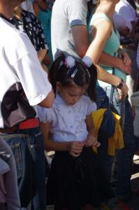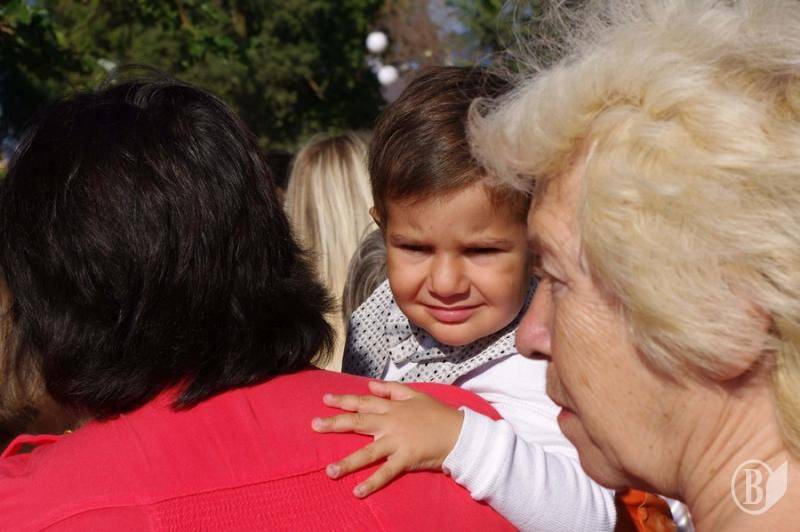А еще малышня не притащила на линейку веники. Дети пришли без цветов, букеты из которых прячут за собой черниговских малышей.