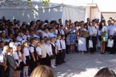 Праздник первого звонка в этом году я увидела в поселке городского типа Межводное, автономной республики Крым. Тоже линейка, тоже первоклашки, выпускники, родители, учителя. На первый взгляд ничего необычного. На первый.