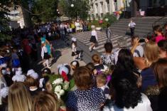 В школу малышню за руку провели их старшие товарищи. В добрый путь, как говорится. Красивая традиция, в Чернигове тоже водят :).
