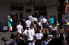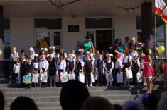 Каждый первоклассник (каждый!) рассказал небольшое стихотворение. Я понимаю, это поселок городского типа, это возможно. Однако это интересно и приятно, согласитесь. Потом выпускники подарили наименьшим ученикам символические подарки.