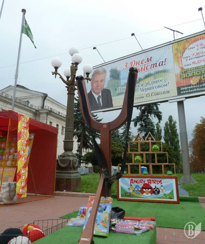 Впрочем, с каждым годом подобные празднования все более напоминают прикрытый школьными и другими бюджетными декорациями вынесеный в центр центральный рынок с шашлыками по 25 гривен за 100 граммов. Изюминкой, правда, стал аттракцион-рогатка прямо напротив биг-борда с приветствием городского головы.