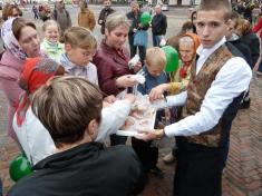 В этот раз на площади раздавали бесплатные булочки с хорошими пожеланиями, которые запасливые женщины набирали полные сумки и целлофановые пакеты. Фотографы также получили свою награду – хорошие кадры.