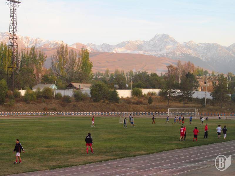 Прогулявшись по улицам, расположенным в радиусе четырёх кварталов от базара, вернулся в центр. Увидев указатель на стадион, пошёл его посмотреть. А стадиончик-то для такого города, как Каракол, весьма неплохой.