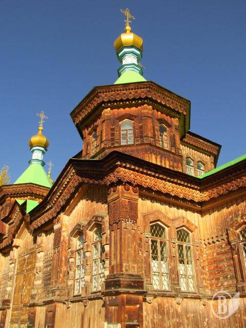 Выйдя из подвозившего меня китайского грузовичка в центре города, очень быстро нашёл Свято-Троицкий собор – большой и красивый старинный деревянный храм. Его предшественник – каменный собор – был разрушен сильным землетрясением 1887 года. Нынешний собор возвели в 1895 году, позже он подвергся достройке.