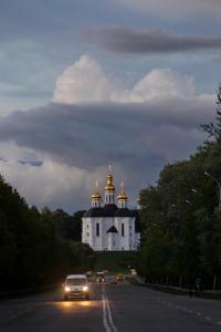 Где еще, в каком городе храм так радушно приглашает на самом въезде посетить историческую жемчужину Киевской Руси.