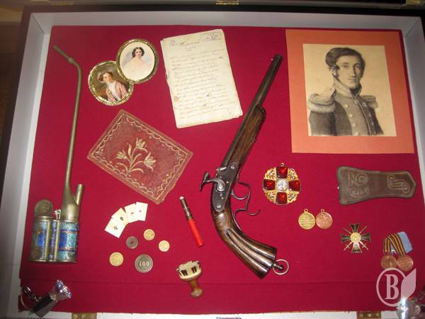 Выставка “Маленькие безделушки дворянского мира. . ” рассказывает о далеком, кое-где романтичном, периоде нашей истории. Экспозиция состоит из вещей, которыми: забавлялись мальчики – игрушки, учебники, среди них и письмо ученика московского частного пансиона Эннесса Василия Тарновского родителям; пользовались юноши – военное снаряжение и награды первой половины ХІХ в., игральные марки и трубка для курения; дорожили мужчины – личные печати, а среди них и клейнод Галаганов, записная книжка Василия Тарновского-старшего, предметы одежды из бисера. На выставке выставленыы портреты, любезно предоставленные нашими коллегами из областного художественного музея имени Григория Галагана, и военные и гражданский однострой. Авторами выставки является Елена Трухан и Артем Лаевский.
