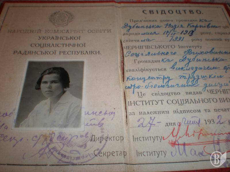 У липні 1932 року Надія закінчила Чернігівський інститут соціального виховання (виявляється, що був такий навчальний заклад), здобувши дивний як на сьогодення фах – «викладач старшого концентру трудшкіл з агро - біологічних дисциплін». Кілька років навчала грамоти дітвору в Західній Україні.