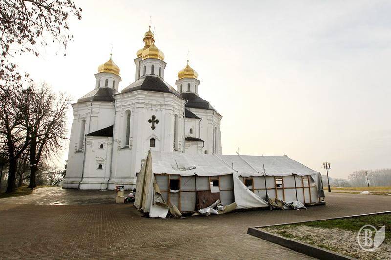 І тільки філіал Московської церкви поставив намети, з неповагою до чернігівців біля однієї з найкрасивіших церков і до законодавства України. І вимагав віддати йому козацьку церкву Святої Катерини. Зневажаючи рішення судів.