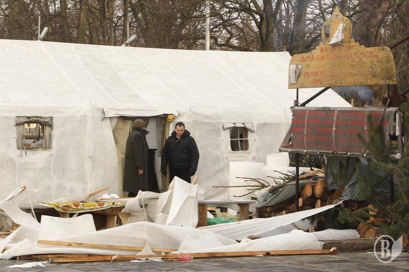І нарешті , вранці 23 лютого на місці наметів уже чисто і підметено. 7 років бомжатника, як сон.
