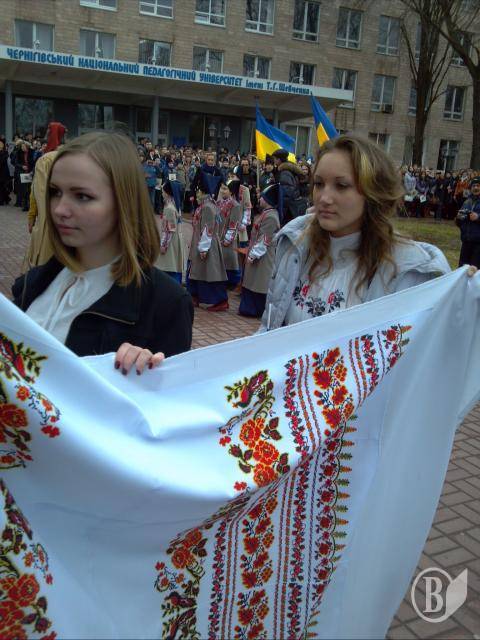 Сьогодні чернігівці обійшли кіровоградців, які у кількості 500 чоловік одночасно декламували вірш Володимира Сосюри «Любіть Україну».