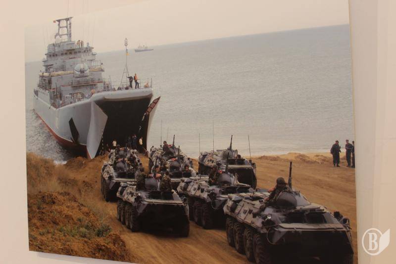 Всього в експозиції майже півсотні фоторобіт, зроблених майстрами фотографії у військових частинах, на полігонах під час вітчизняних і міжнародних навчань та у миротворчих місіях.