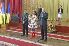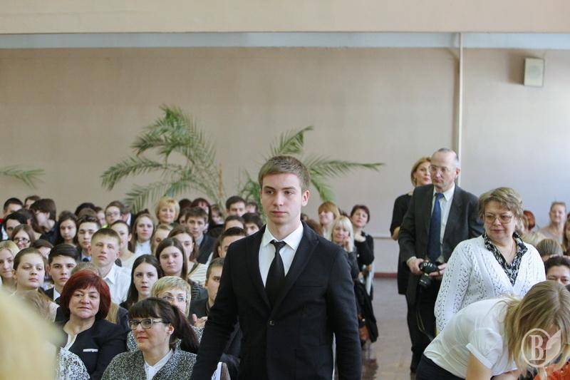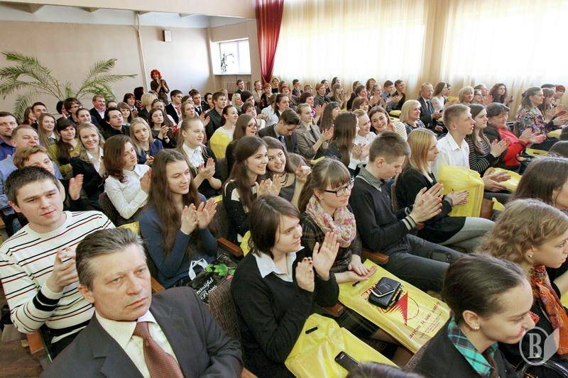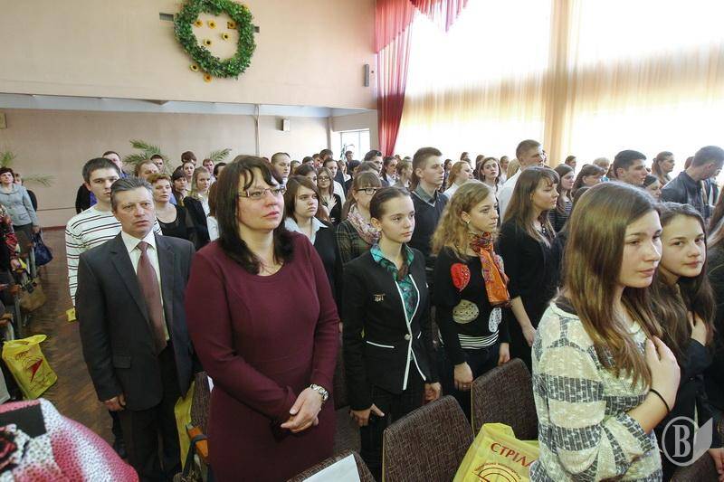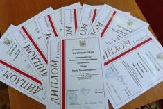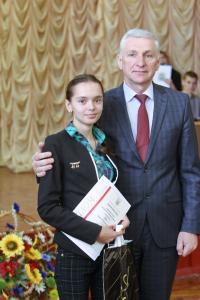 На одном из снимков председатель оргкомитета Анатолий Залеский и победительница Мария Новик и лучшие среди лучших, победители Всеукраинской олимпиады, которые получили Дипломы 1-й степени