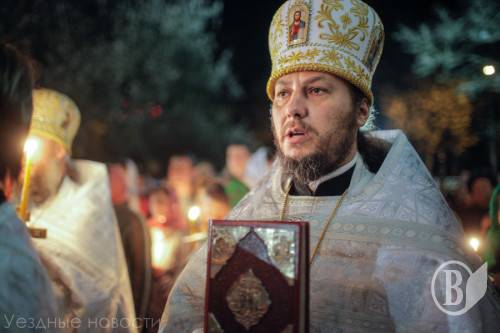 До початку пасхальної служби, дві хресні ходи — з Благовіщенського монастиря та з Миколаївського собору вийшли на зустріч, зійшлися в одну велику на Гоголевській. Два великих хори співали стихіру, потім знову розійшлися по храмах, залишивши відчуття святкової містичності та величі.