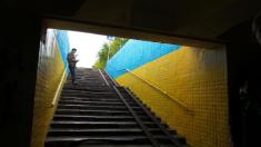 Громадська організація «Молодь ПРОТИ» перефарбувала підземний перехід поблизу «України» у колір національного стягу.