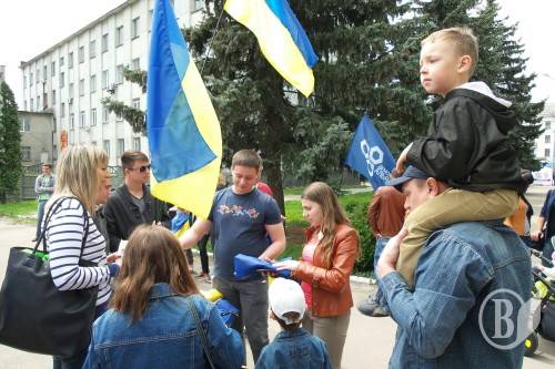 Многие подходили, чтобы приобрести флаг, вместе с детьми, те — охотно завязывали флаг поверх одежды и гордо маршировали по Гоголевке. Однако были многочисленные замечания относительно громкой музыки при проведении акции во время общенационального траура.