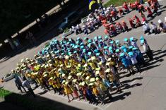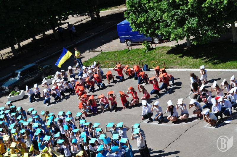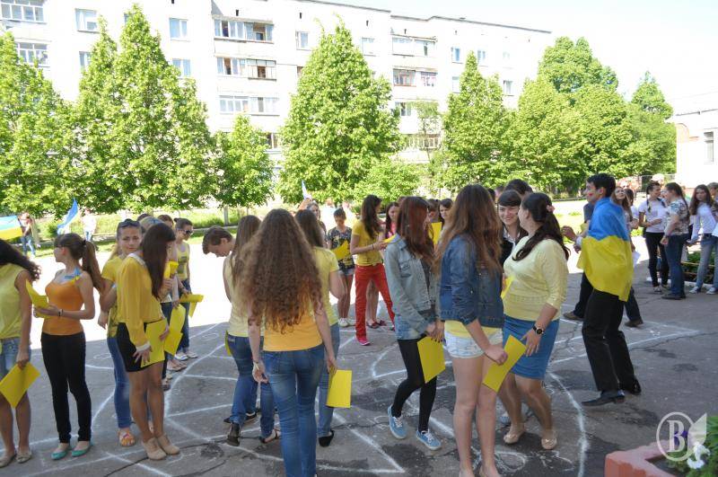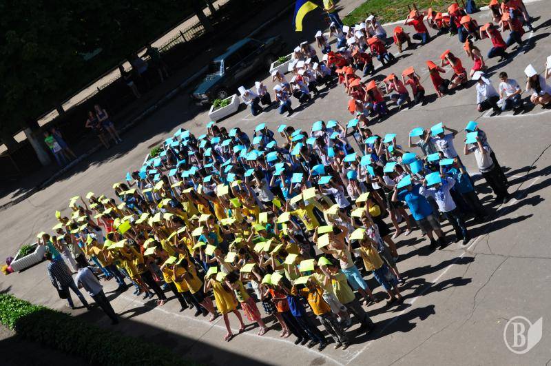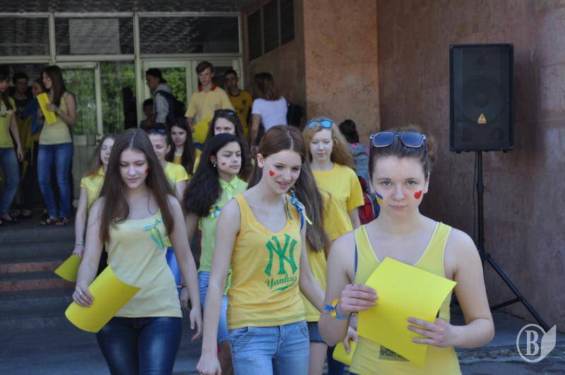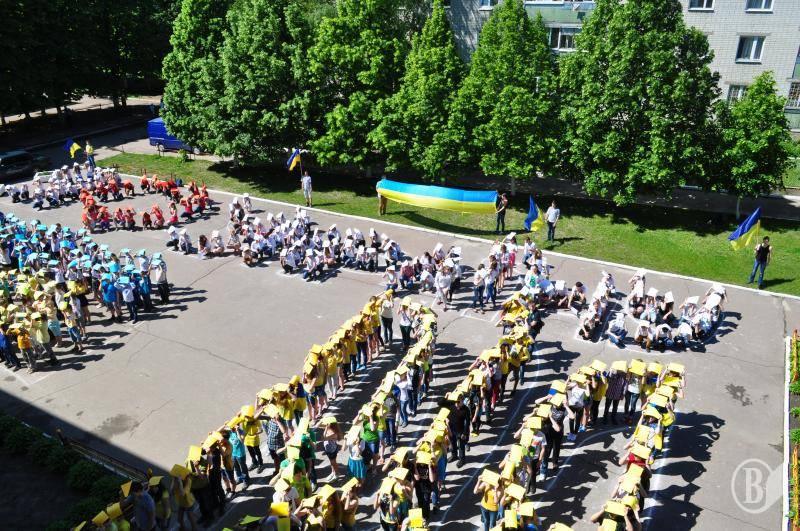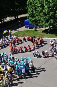 Наприкінці флеш-мобу учні та вчителі заспівали Державний Гімн України»
