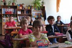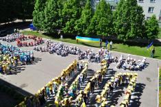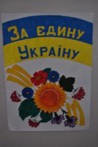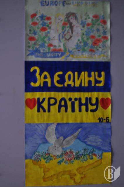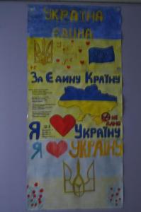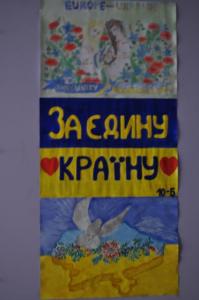 На великій перерві, у затишному дворику школи з’явилася інсталяція Державного Прапору України, Державного Гербу України, та надпис «Я люблю Україну». Інсталяції були утворені з учнів п’ятих – десятих класів.