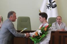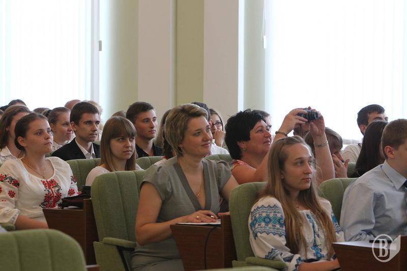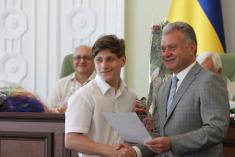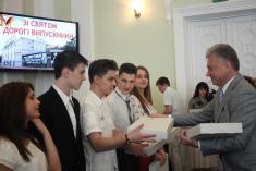 Традиционная встреча черниговского городского председателя Александра Соколова состоялась с"поцелованными Богом детьми"- так сказала в своем выступлении мама двух сыновей-медалистов из общеобразовательной школы №7.