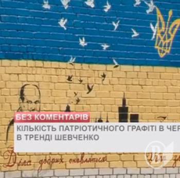 Чернігів поповнився новими патріотичними графіті з використанням національних символів – тризуба, кольорів прапора, а також за тематикою творчості Тараса Шевченка.