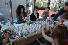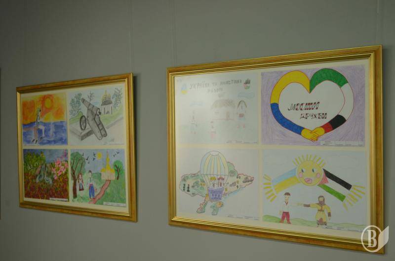Во время выставки с помощью скайп-связи состоялся телемост между детьми Украины и Палестины. Палестинские дети показали свои рисунки. Больше эмоций у присутствующих вызвала картина палестинской девочки с символом «Слава Украине».