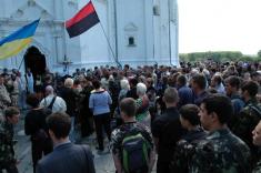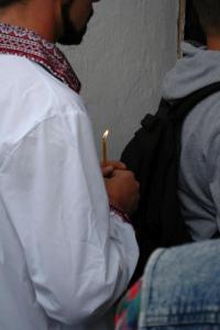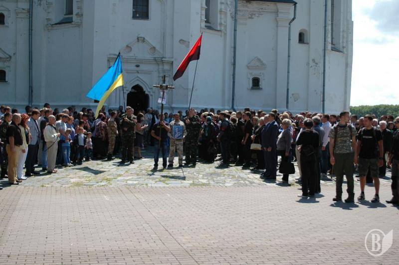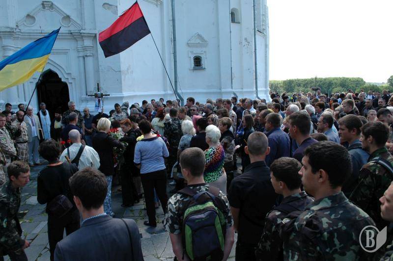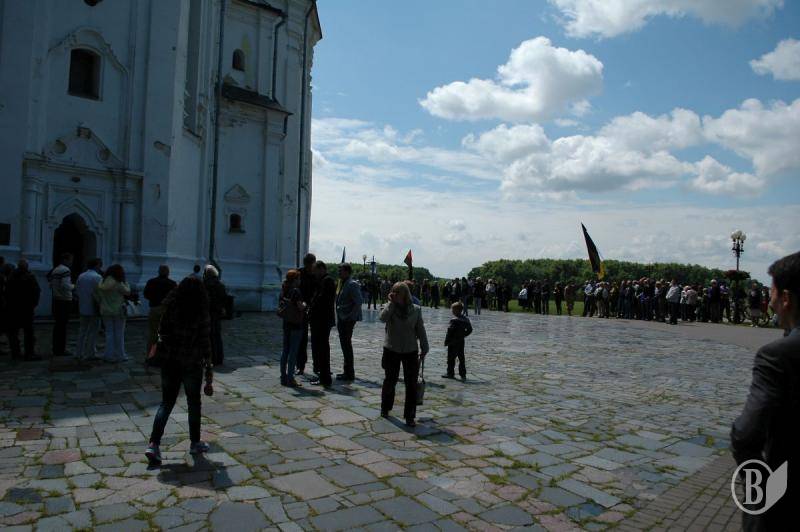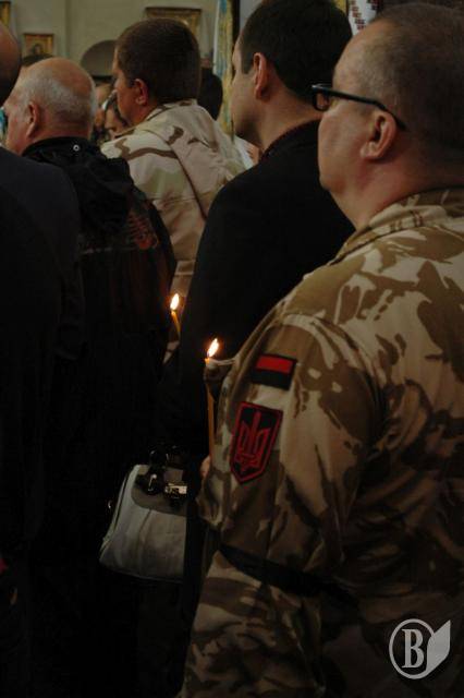 Катерининская церковь не могла вместить всех желающих отдать дань уважения погибшему, поэтому часть собравшихся слушали панихиду снаружи. Были здесь, кроме родственников, и побратимы Алексея, его товарищи по Самообороне и простые черниговцы, которые решили почтить память героя. Пришли и некоторые из нынешних чиновников.