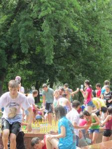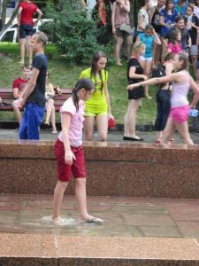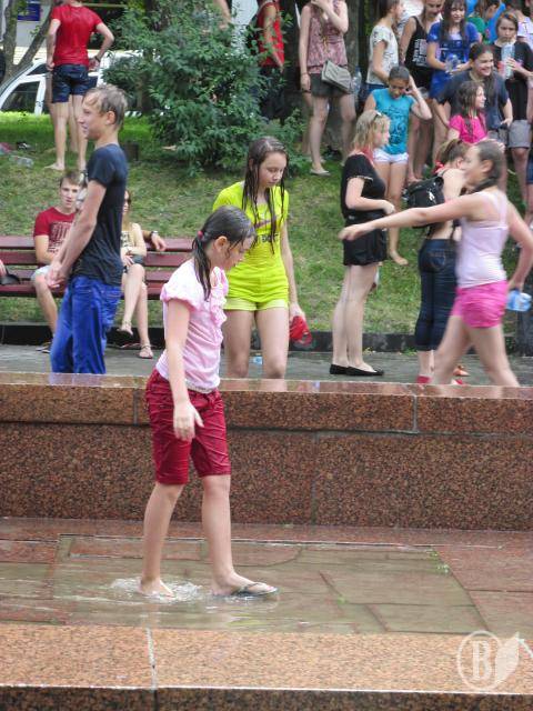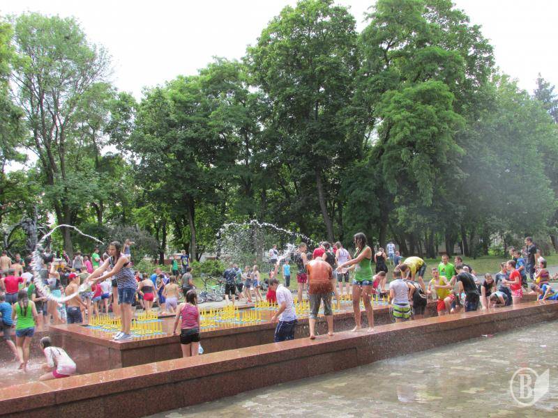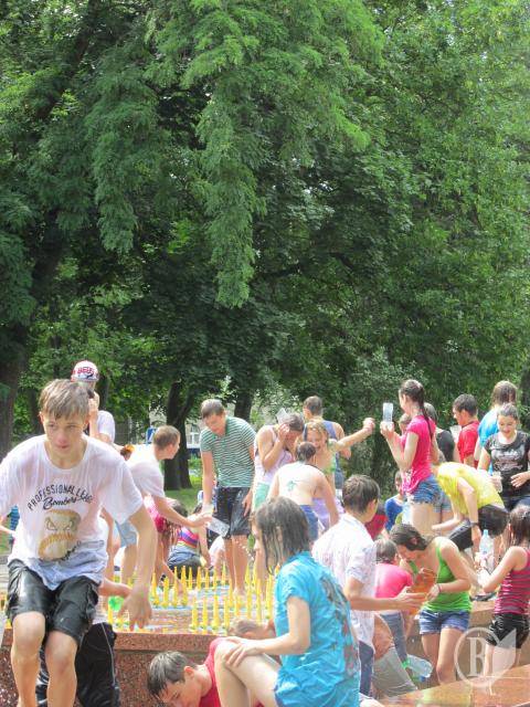 Несколько десятков юных черниговцев и черниговчанок, ополчившись бутылками и ведрами сегодня, 5 июля, собрались на Аллее Героев, на «Водные войны».