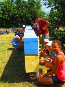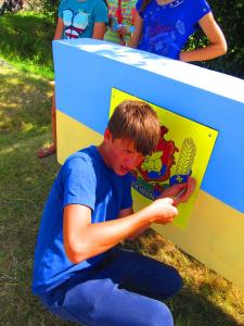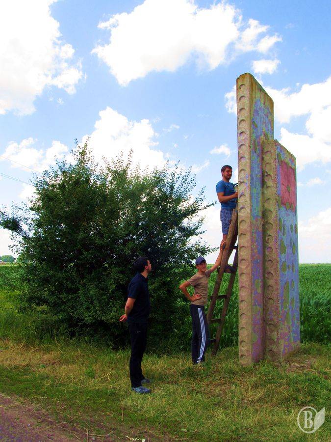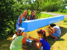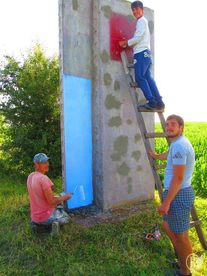 Молодь розфарбувала стели при в’їзді до селища у кольори прапору України.