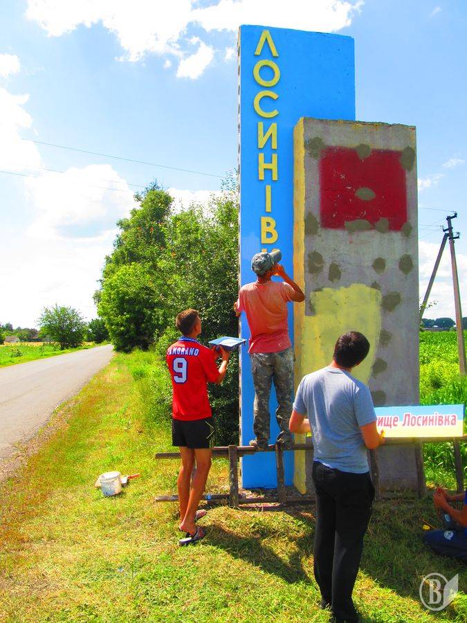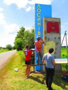 Закінчивши розфарбовувати знак на в’їзді, молодь задумала не зупинятися на досягнутому. У планах синьо-жовті містки через стародавню лосинівську рудку (річку) Ірод та багато інших гарних проектів.