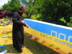 «Спочатку ми звільнили плити від старого нашарування піску та цементу, потім наш головний майстер Володимир Біляков все якісно зашпаклював, а вже в суботу всі приступили до фарбування. Над однією плитою працювало по сім осіб і за декілька годин вже всю роботу завершили», - розповіли студенти Київської духовної семінарії Богдан та Юрко.