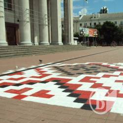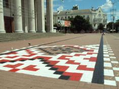 Громадські активісти поблизу головної сцени області почали розмальовувати плитку у народні кольори – червоний, чорний та білий.