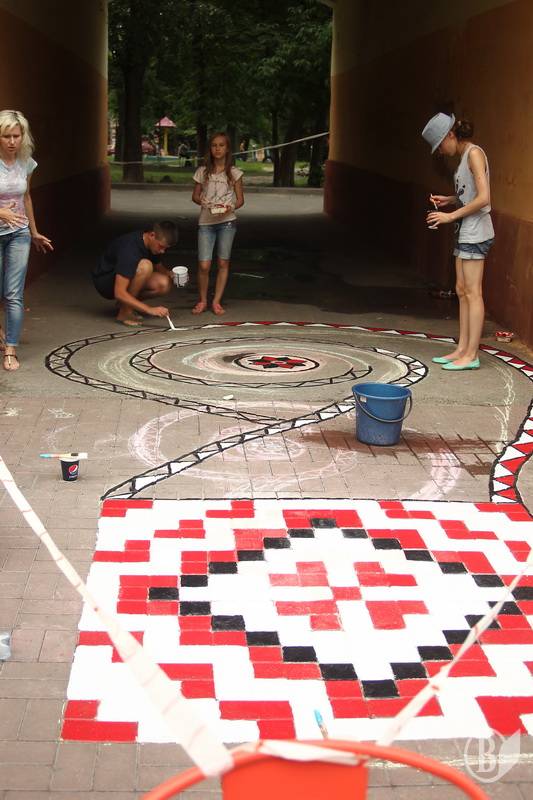 Поки в Чернігові йдуть дискусії – чи треба розфарбовувати і вдягати в національні кольори площу, бруківку, стіни переходів – місто убирається в національні символи та візерунки.
