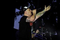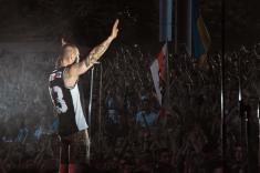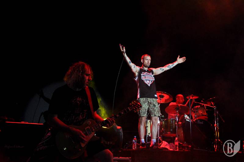 На концерт приїхали ще й білоруси(на фото можна побачити численні біло-червоні і стяги). Для сябрів – це чи не єдина можливість побачити своїх кумирів, адже добрий і справедливий «Батька», як відомо, заборонив у себе в країні Міхалка і ко.