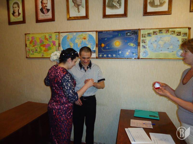Церемония хотя и не была торжественной, но мало чем отличалась от таковой. Свадебный букет, марш Мендельсона, рушнык и традиционные вопросы начальника отдела государственной регистрации актов гражданского состояния регистрационной службы Надежды Зайчик: «Согласны ли вы стать мужем и женой?» создали молодым особенное настроение. Без белого платья, свадебного кортежа, но волнуясь и смущаясь молодые получили свидетельство о регистрации брака.