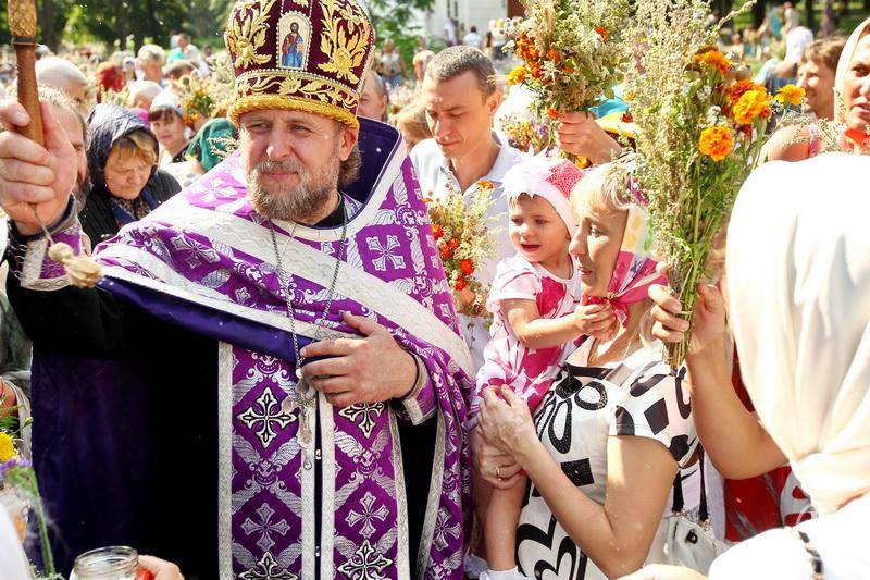 Маковій покликав до церков людей з медом , булочками з медом букетами з квітів.
