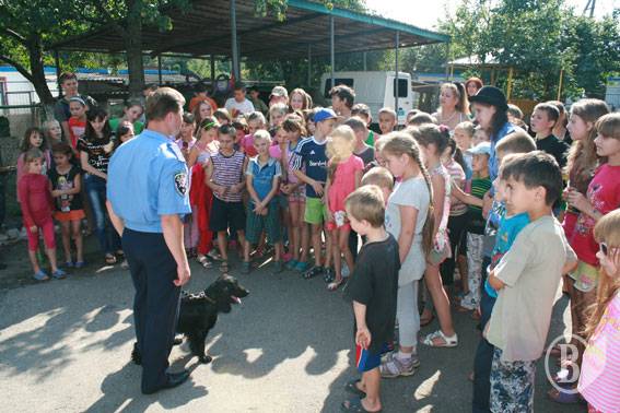 Екскурсію проводив особисто капітан міліції Роман Конопацький, який лише кілька днів тому повернувся з зони АТО. Його вівчарка «Вільма» виконувала всі команди: «сидіти», «лежати», «місце». Потім під щирі дитячі оплески невисока на зріст «Вільма» подолала всю смугу перешкод, з легкістю здолавши 2-метровий паркан.