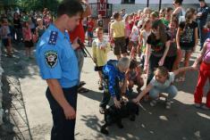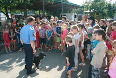 Допитливій малечі показали вольєри зі службовими собаками, розповіли умови їх утримання та дресирування, а потім, на підтвердження сказаного – влаштували показовий виступ за участі чотирилапих помічників міліції.