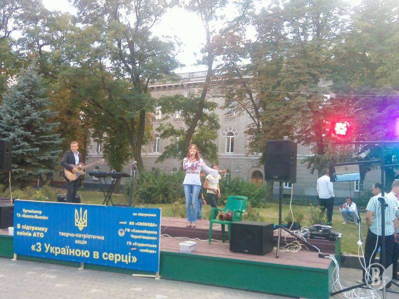 Учасники творчо-патріотичної акції «З Україною в серці» своїм співом заробляли гроші для українських бійців, які проганяють ворога з Донбасу.