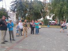 Мета сьогоднішньої акції – зібрати кошти на потреби української армії. Варто зазначити, що спочатку люди просто проходили мимо, або ж просто слухали пісні, а коли дізналися, що акція організована на підтримку бійцям АТО, діставали гаманці і кидали гривні у кошики. Адже, як кажуть, з миру по нитці...