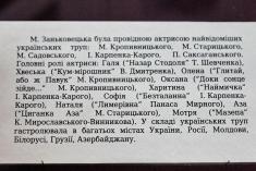 Виставка “Славетна українська актриса” відкрилась 4 вересня з нагоди відзначення 160-річчя Марії Заньковецької в Чернігівському історичному музеї імені В.В. Тарновського.