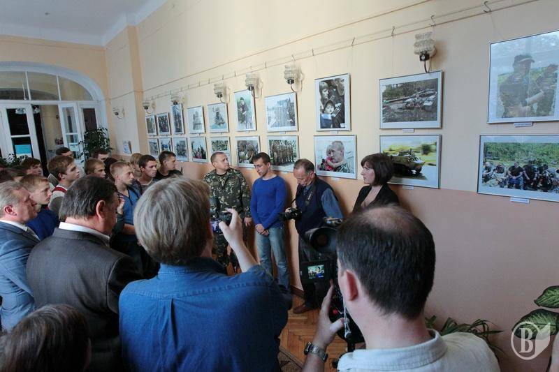 У її експозиції, представлено 30 світлин фотокореспондентів Віктора Кошмала, Владислава Савенка, Павла Солодовніка та підполковника Вадима Мисника.