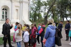 Потім екскурсовод звернув увагу маленьких екскурсантів на величний Борисоглібський собор, розташований поряд зі Спасом, розповів про його історію та таємниці. Захоплено слухали маленькі переселенці зі Сходу розповідь про Чернігівський колегіум та систему навчання в ньому.