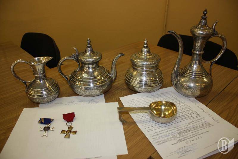 Цінні експонати відправлені і до національних музеїв. Приміром, набір предметів срібного посуду позаминулого століття (1852-94 рр.) отримав Музей історичних коштовностей України. До набору увійшли чайник (вага 735 гр.), кавник (717 гр.), цукорниця (511 гр.) та сметанник (355 гр.).