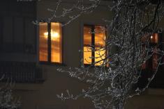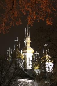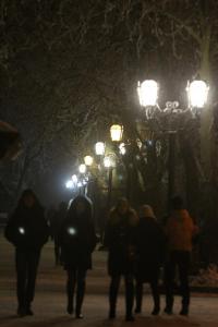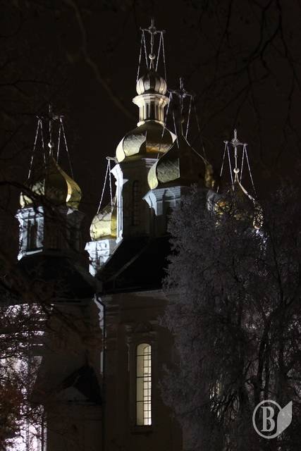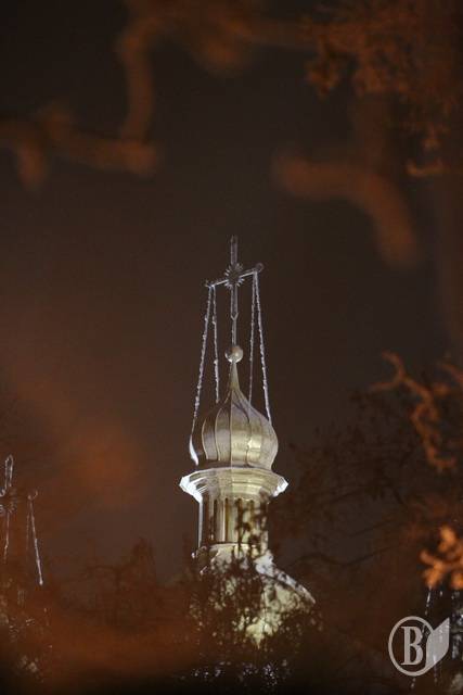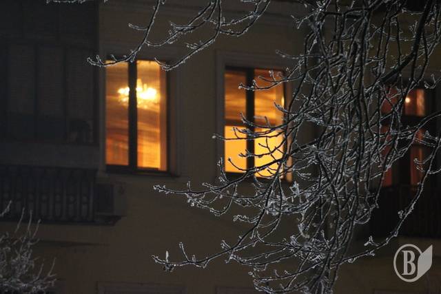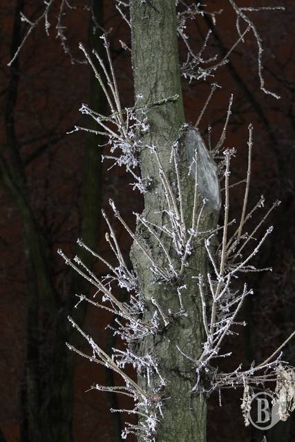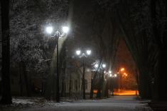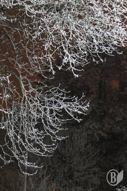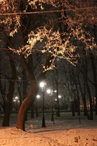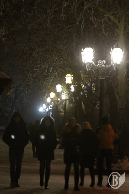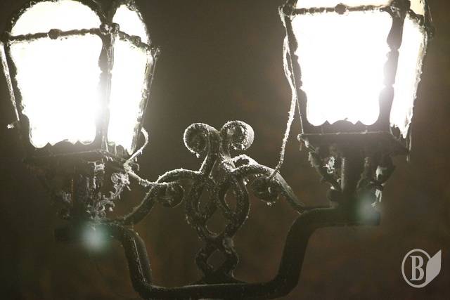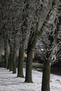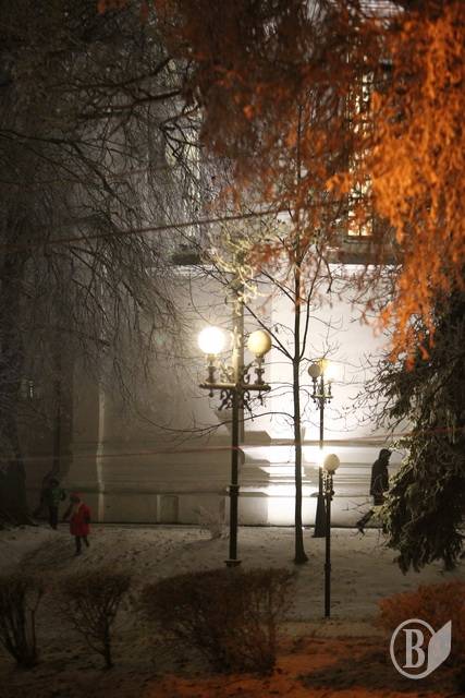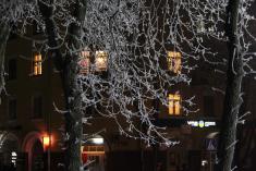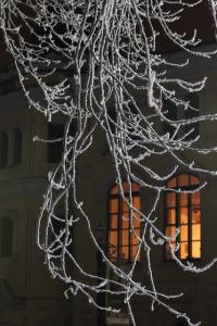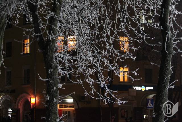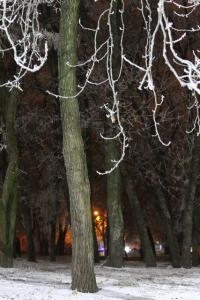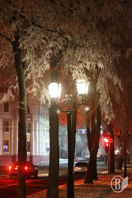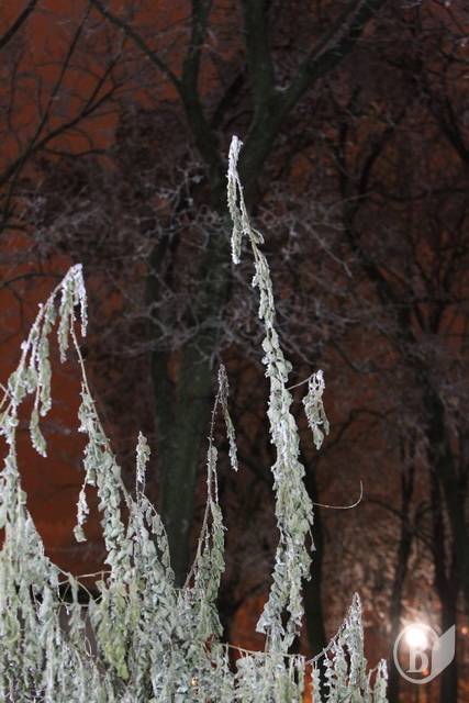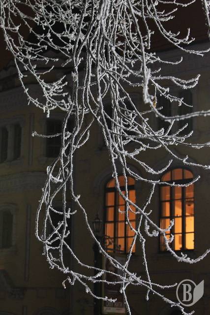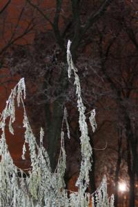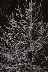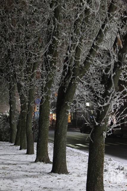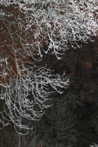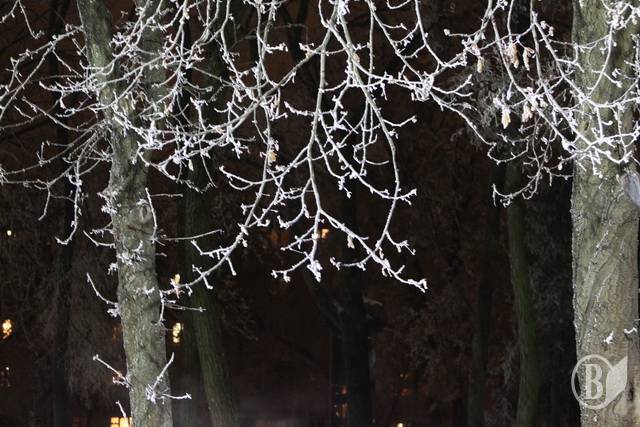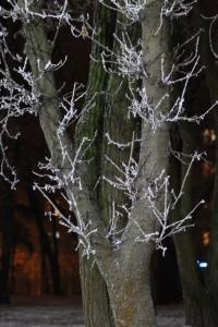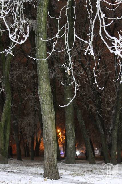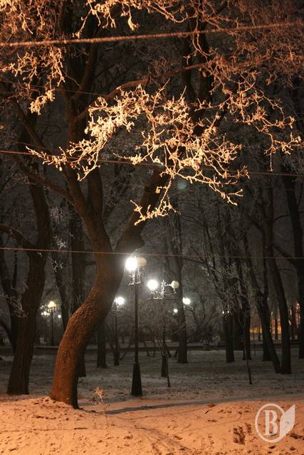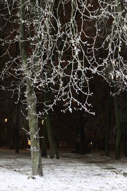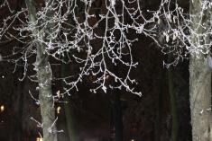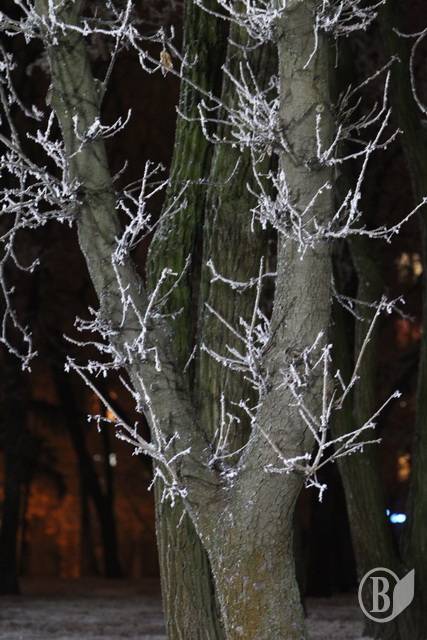 Іней на деревах не часто можна спостерігати. А особливо у нічний час.