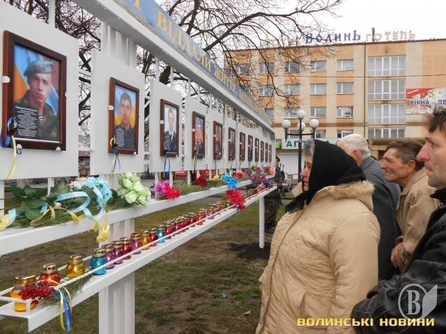 «У містах і селах, де жили чи працювали військові, які загинули на сході України, громадськість та місцева влада організували увічнення пам’яті загиблих героїв. Зокрема, на їх честь встановлюють дошки на будинках, де мешкали загиблі вояки, на навчальних закладах, де вони навчалися», – розповів співробітник Українського інституту національної пам’яті Богдан Короленко.