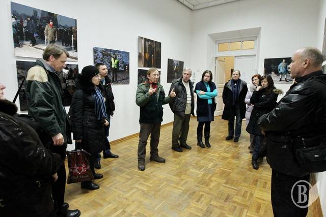 Сама тема Майдану дуже всіх хвилює. Виникла дискусія, до якої автор був готовий. Адже ця виставка побувала вже в багатьох країнах де автору часто задавали різні провокаційні запитання.