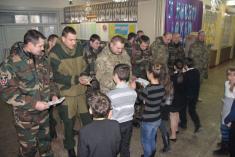 Після офіційної частини почалося живе спілкування дітлахів з воїнами. Школярам було цікаво усе: від умов побуту і розпорядку дня бійців до озброєння і найбільш пам’ятних епізодів бойових буднів спецпризначенців.