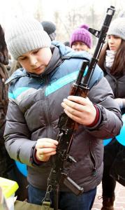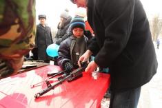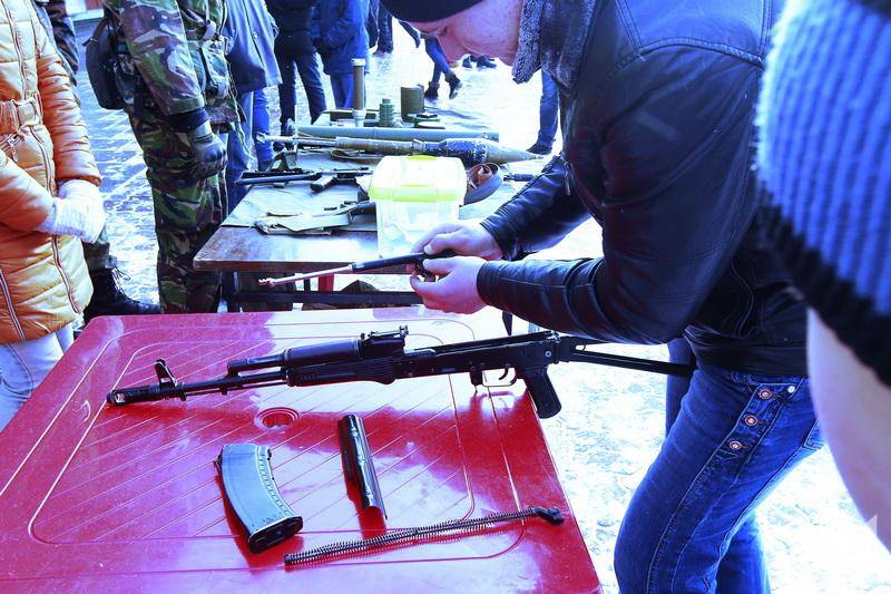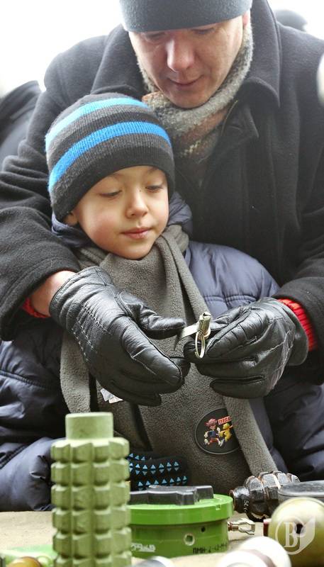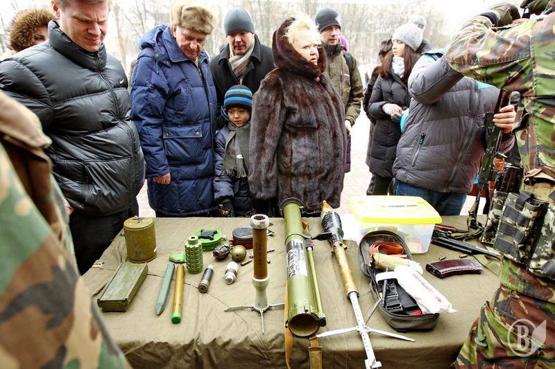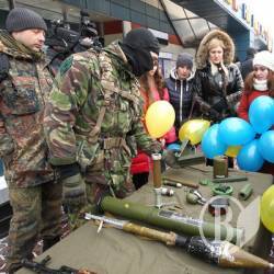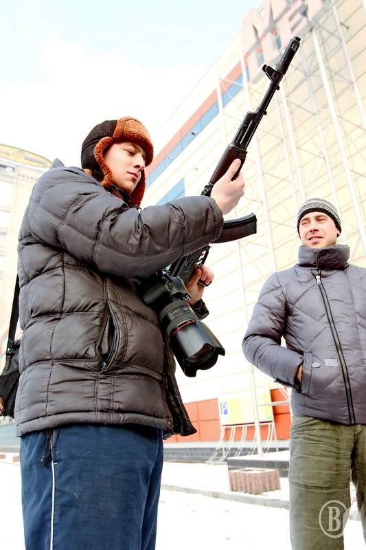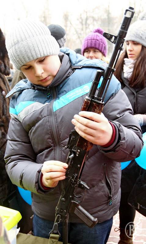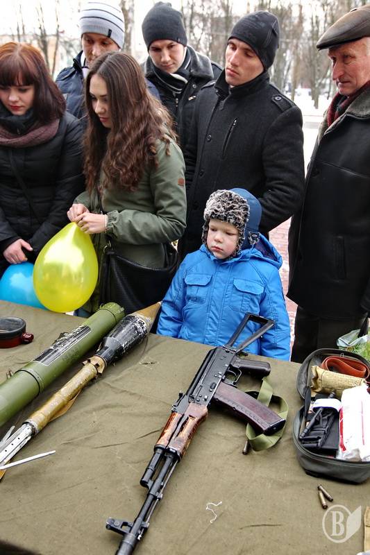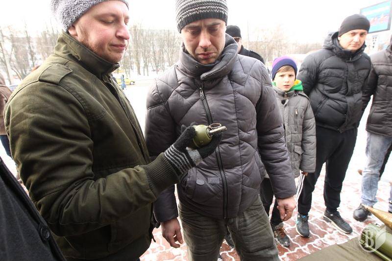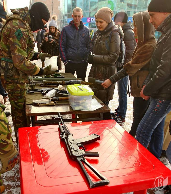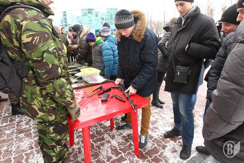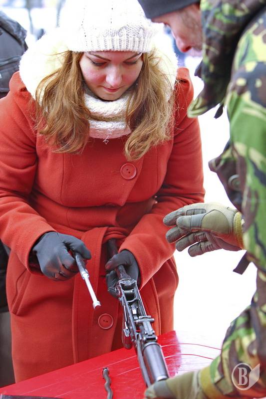 Звісно, тут була застаріла техніка. Кожний бажаючий під керівництвом досвідчених інструкторів міг розібрати та зібрати автомат. Приходили батьки з дітьми, поважні діди цікавилися тактичною зброєю та її особливістю. У скриньку збирали кошти на спорядження для бійців, яка наповнювалася на очах. Байдужих не було. Підходили й дівчатка, навіть автомат теж розбирали.