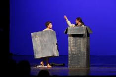 Ось тут і починається велика кількість всіляких різних, смішних і драматичних, перипетій. Але персонаж, котрий шукає, перш за все, щастя, все таки, його знаходить. А щастя в той період пов’язувалось у простої людини з поняттям сім’ї і свого родинного гнізда, тому, той, хто щось робить-обов’язково досягає своєї мети: чоловік знаходить свою дружину, брати знаходять своїх батьків, слуги-близнюки також знаходять один одного. В результаті панує загальна радість і гармонія, а як це буде відбуватися у нашій виставі – побачить глядач.