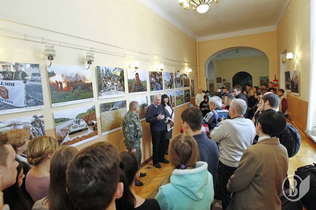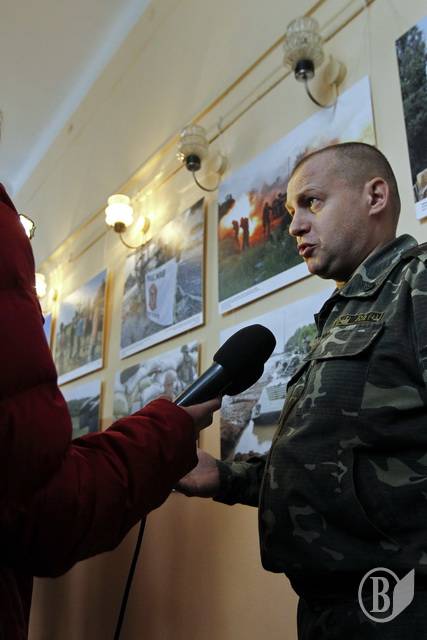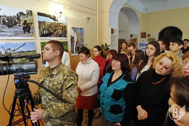 — Фотороботи охоплюють різні аспекти діяльності підрозділів Української армії в зоні АТО, окремі миттєвості з буднів вояків, настрої захисників на передовій та виконання ними бойових завдань. Автори передали атмосферу, що панує Донбасі. За кожною світлиною — справжній герой, який самовіддано любить і служить своїй Батьківщині, віддаючи всі свої сили і своє життя для добра Українського народу, — розповів гостям начальник Чернігівського регіонального медіа-центру Міноборони України підполковник Вадим Мисник.